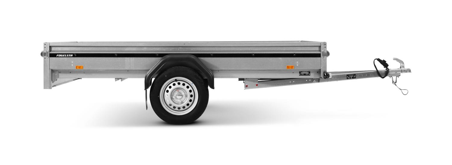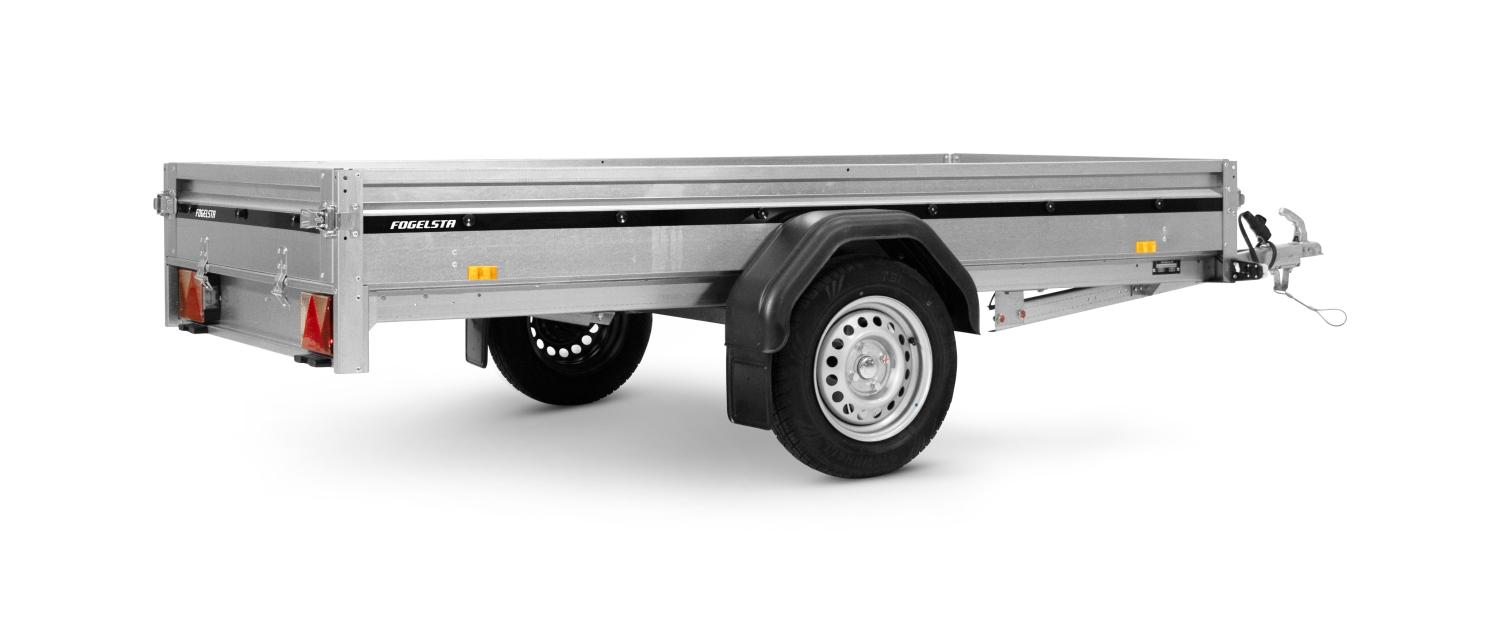 Flakmått anpassat för byggskivor Prisvärd och smidig fritidsvagn Fällbar fram- och bakläm för enkel lastning