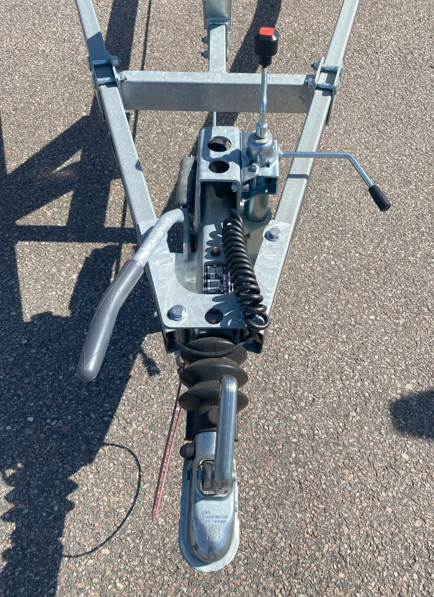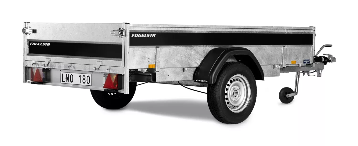 Bromsad släpvagn 283x135cm med tippbart flak. Levereras med gasdämpad tipp, fast kabel 13 pol kontakt, rostfria lykthållare för positionsljus, utvändiga bindkrokar, surrningsöglor i lämsidan och stödhjul som standard. Baklämen håller för att köra upp tex. 4-hjuling eller klippare på vid lastning. Våra släpvagnar har lite längre dragbalkar vilket gör att de är mer följsamma och lättare att backa med.