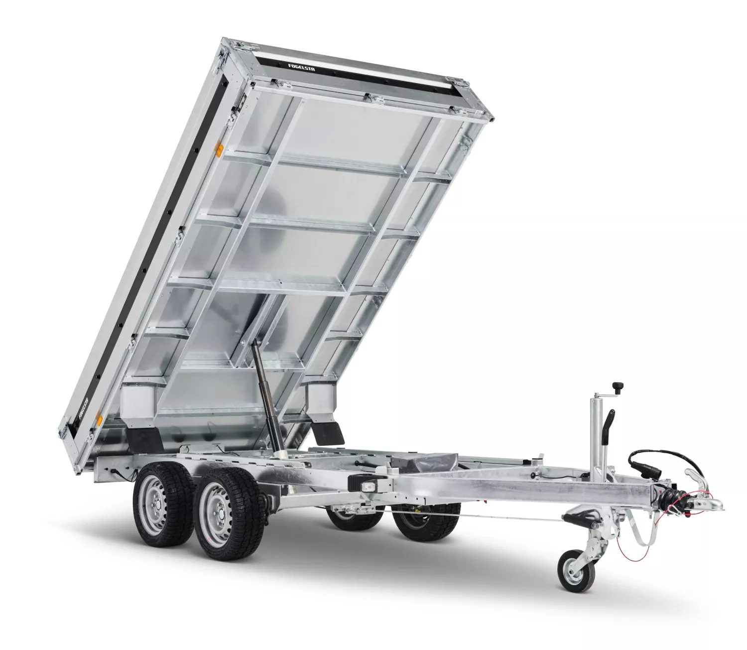 En perfekt arbetskamrat för entreprenören och för transport och lastning av sand, ved eller grus. En robust envägstipp med en eller två axlar. Förstärkt flakskiva i stål med manuell-hydraulisk eller el-hydraulisk tipp för enkel användning. Hög tippvinkel gör släpvagnen smidig för lastning samt transport av grus, trä eller byggmaterial. Fällbara och avtagbara lämsidor, avtagbara hörnstolpar och presenningsknappar som standard. Sex kraftiga invändiga bindöglor integrerade i flakskivan. Utrusta släpvagnen med nätgrind, förhöjningslämmar, kapell eller något annat tillbehör ur det breda sortimentet som är gemensamt med Serie 4000.