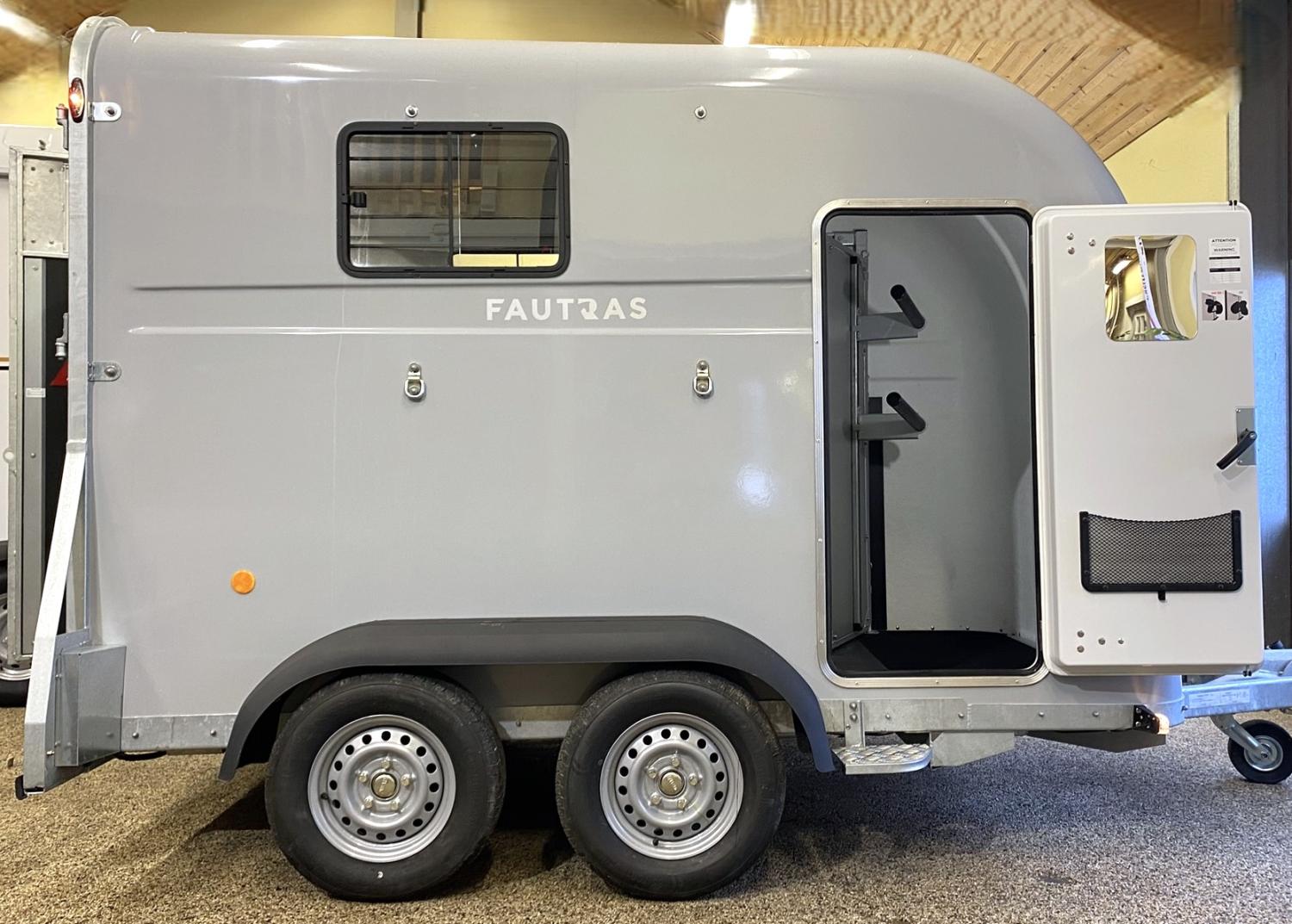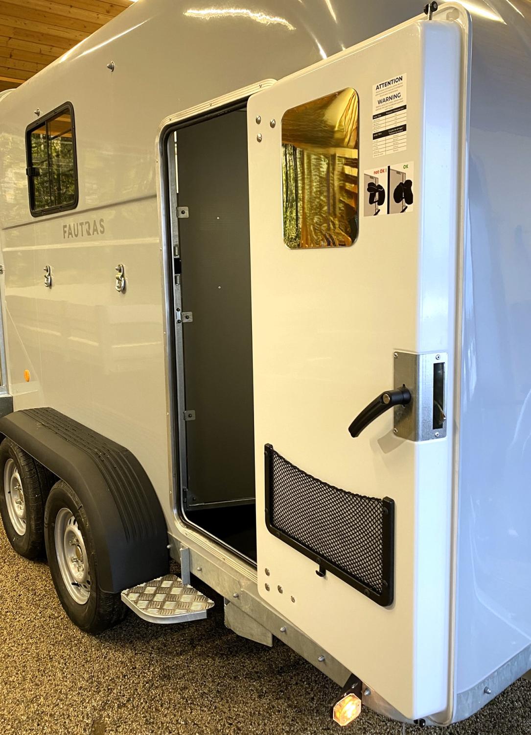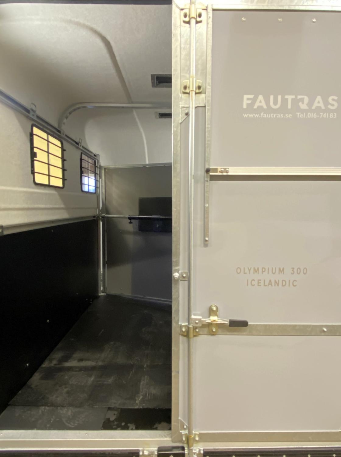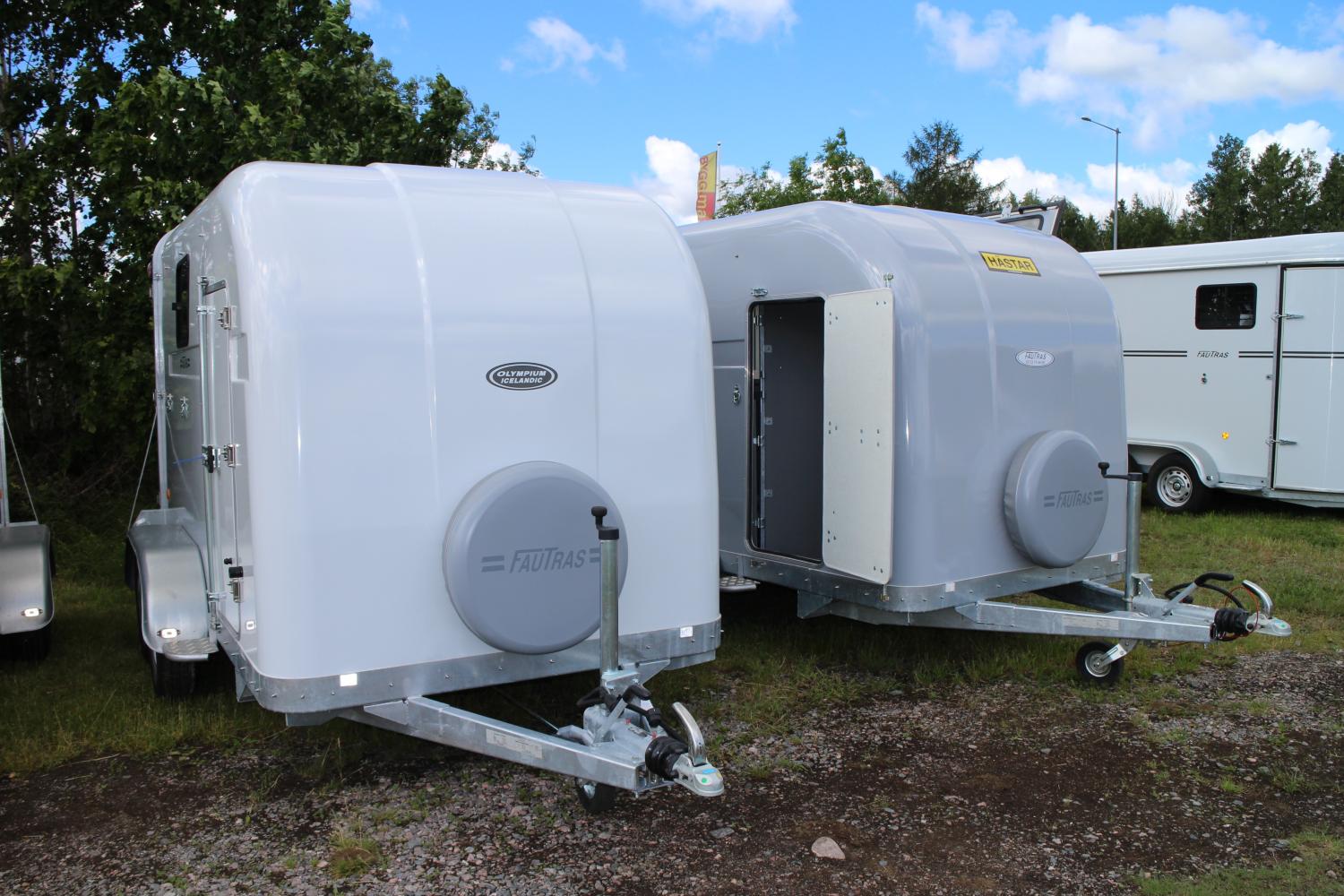 I Fautras Icelandic 2 står hästarna diagonalt och har inga bommar framför sig. Mycket stor sadelkammare med hängare och krokar. Välj till öppningsbar sida där hästarna kan stå och titta ut. Ställbar vägg och bom för olika storlekar av hästar och enkel att ta ur om du vill lasta annat i hela trailern. Tre öppningsbara fönster, takluckor och ventilationsluckor ger bra ventilation. Golvskivan i polyetylen har livstids garanti och det är 8 års garanti på chassit. Enkelt handhavande utan tunga lyft med dörrar bak - Step up = enkelt att lasta. Helt i glasfiber och kvalitativt stål. Har även bl a innerbelysning, kraftigt stödhjul, reservhjul, halkfri gummimatta, låsbar kulhandske och kraftiga sparkskydd. Pris standardutrustad 153 320kr+moms. Finansiering erbjuds, från 1 908kr per månad inkl moms. En mycket trevlig och populär hästtrailer. Fler leveransklar i färgen vit med tillvalet öppningsbar sida. Övriga färger och annan utrustning på beställning med ca 8 veckors leveranstid. Välkommen till Fautras och Släpcenter!
