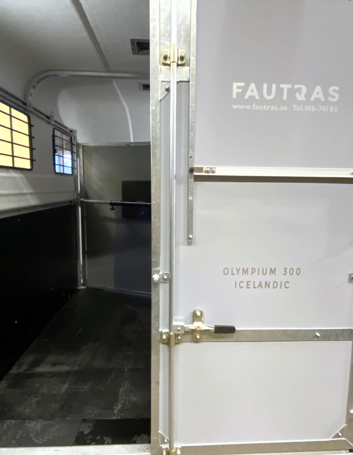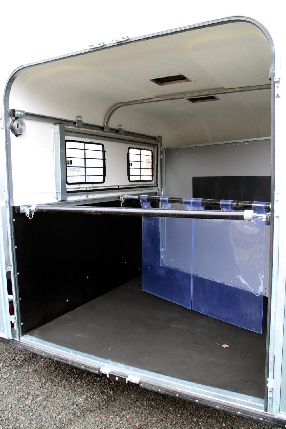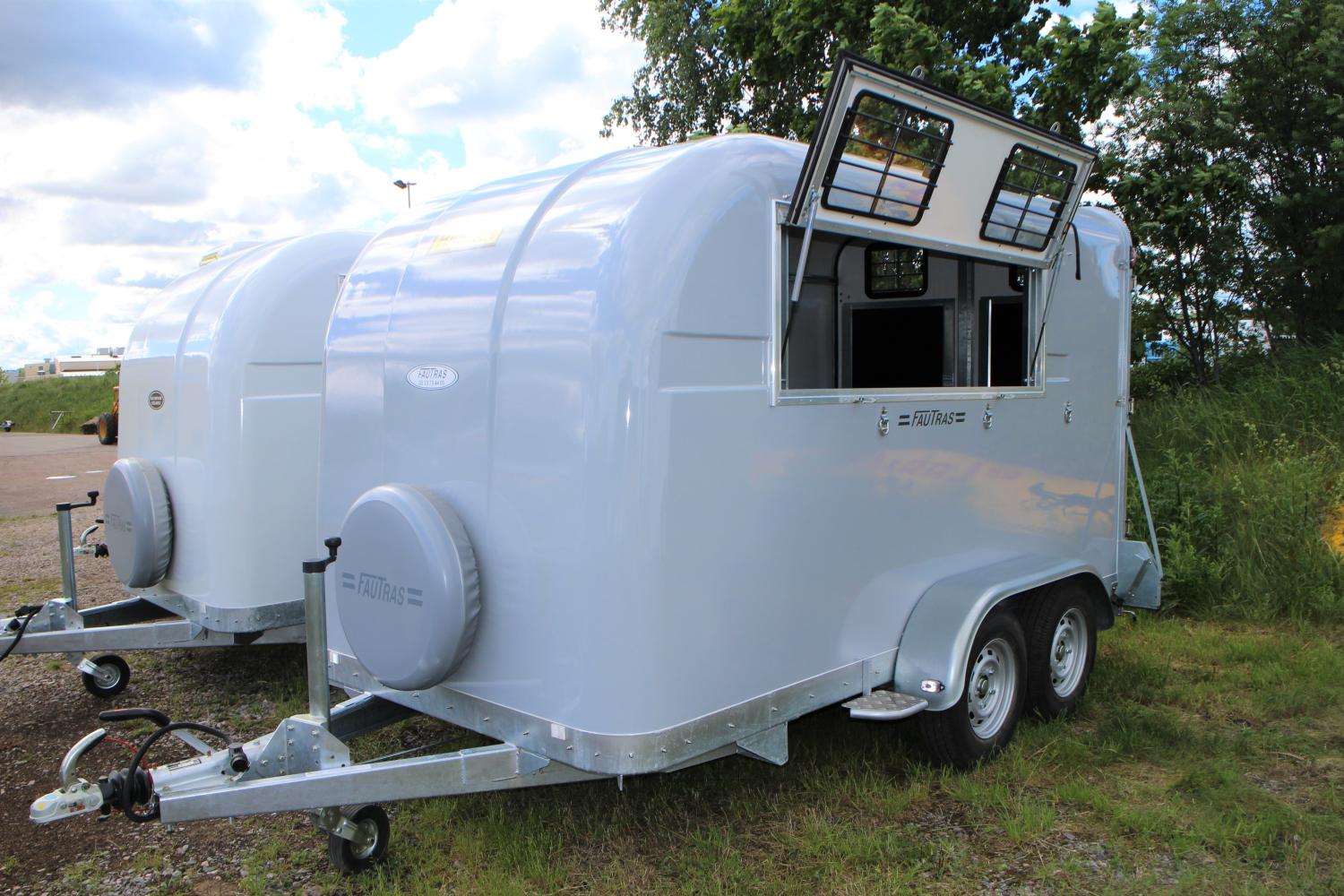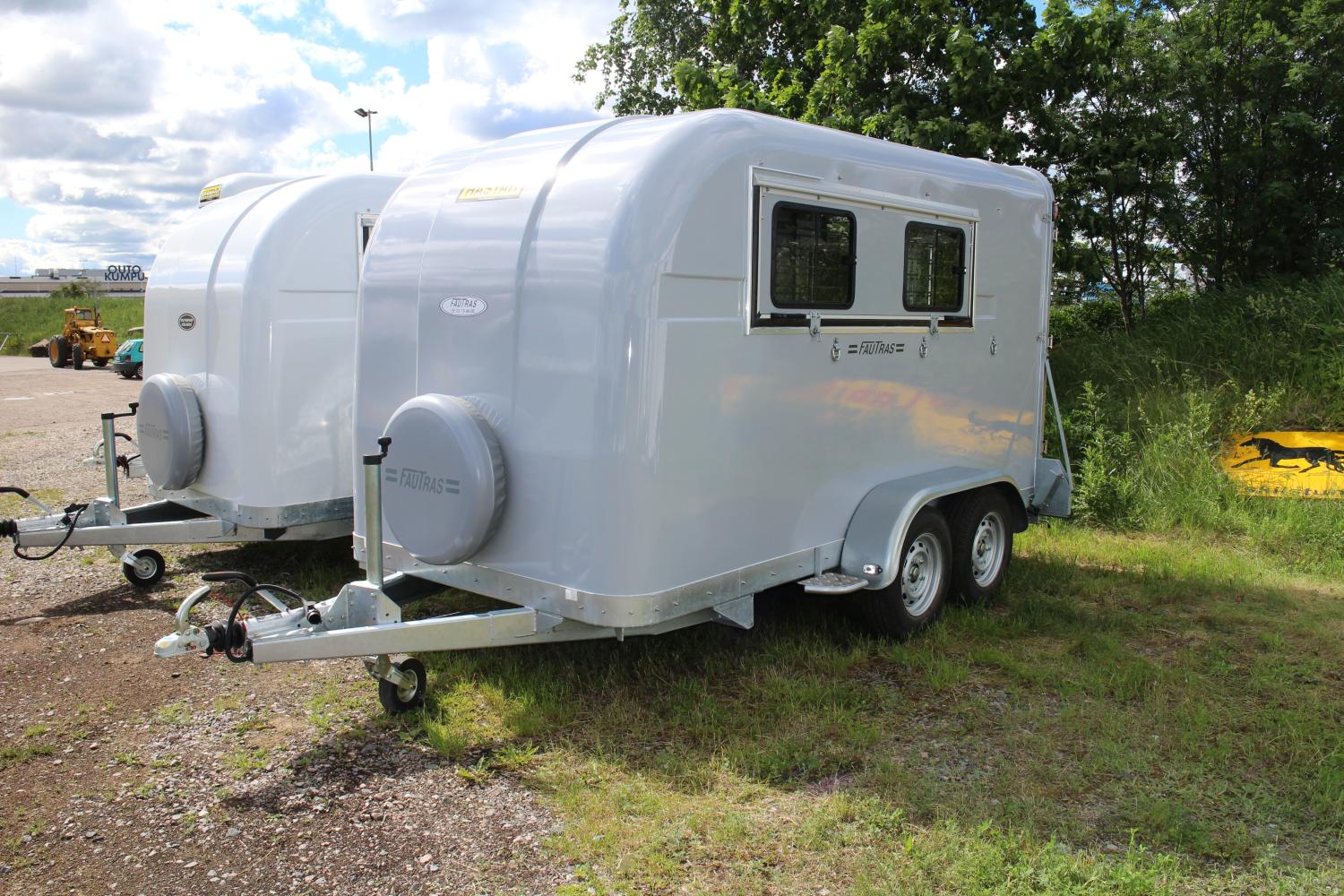 I Fautras Icelandic 2 står hästarna diagonalt och har inga bommar framför sig. Mycket stor sadelkammare med hängare och krokar. Välj till öppningsbar sida där hästarna kan stå och titta ut. Ställbar vägg och bom för olika storlekar av hästar och enkel att ta ur om du vill lasta annat i hela trailern. Tre öppningsbara fönster, takluckor och ventilationsluckor ger bra ventilation. Golvskivan i polyetylen har livstids garanti och det är 8 års garanti på chassit. Enkelt handhavande utan tunga lyft med dörrar bak - Step up = enkelt att lasta. Helt i glasfiber och kvalitativt stål. Har även bl a innerbelysning, kraftigt stödhjul, reservhjul, halkfri gummimatta, låsbar kulhandske och kraftiga sparkskydd. Pris standardutrustad 153 320kr+moms. Finansiering erbjuds, från 1 908kr per månad inkl moms. En mycket trevlig och populär hästtrailer. Fler leveransklar i färgen vit med tillvalet öppningsbar sida. Övriga färger och annan utrustning på beställning med ca 8 veckors leveranstid. Välkommen till Fautras och Släpcenter!