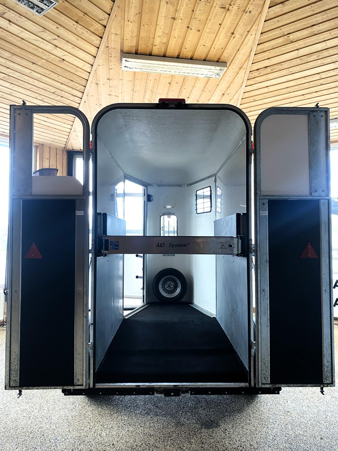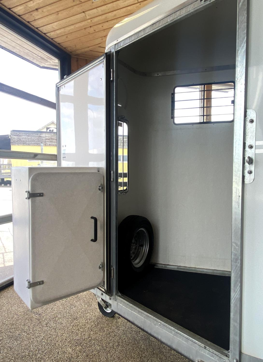 1,5-hästars hästsläp i fint skick. Utrustad med AidSystem, sadelskåp, extra fönster öppningsbart, aluminiumfälgar.