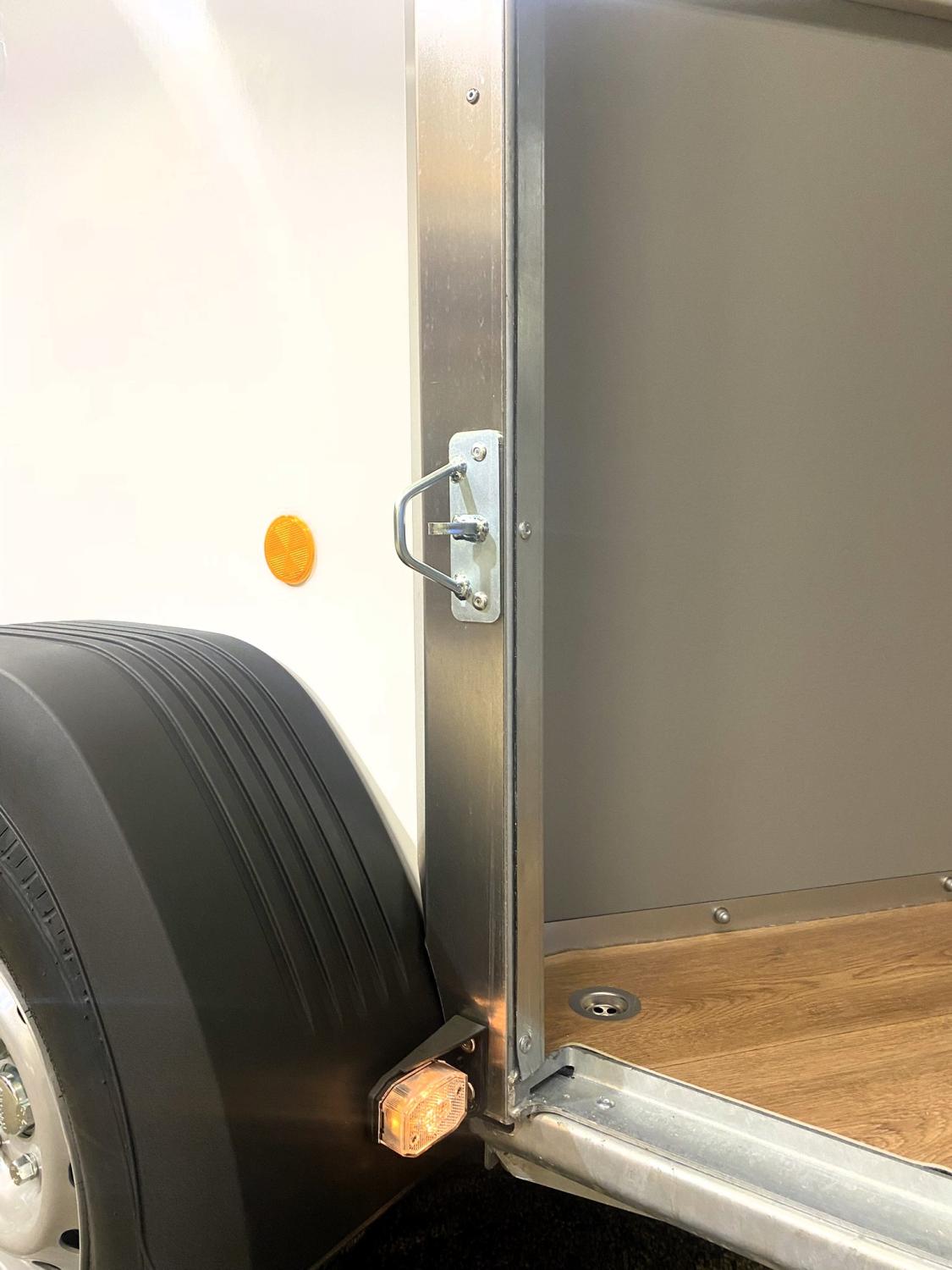 Denna större och rymligare utveckling av Oblic+ har en stor vattentät sadelkammare i fronten. Här får du plats med två vanliga tävlingsskåp / sadelskåp på hjul eller större trunks (upp till 130cm långa).