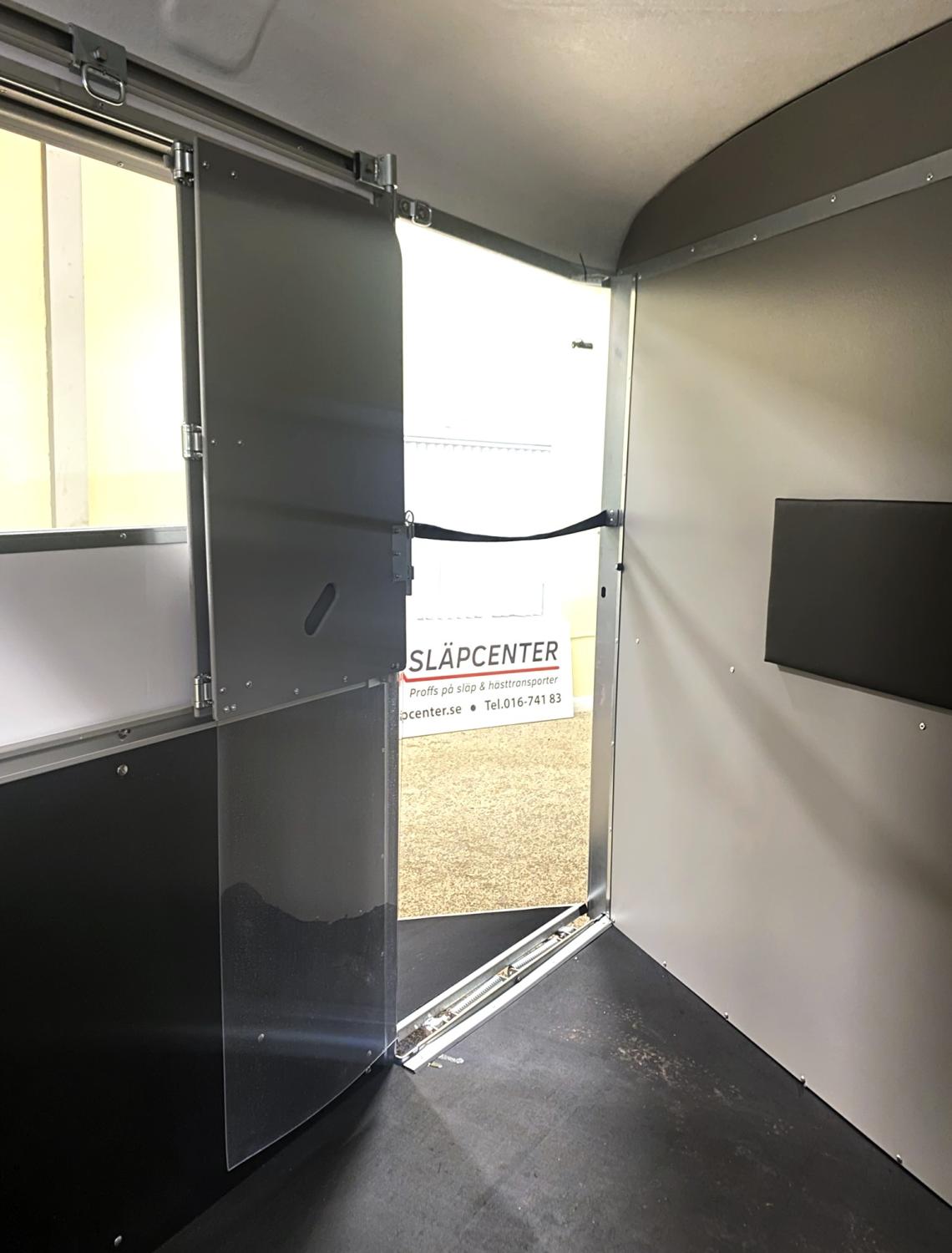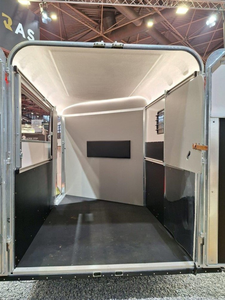Fullstora dörrar som tillåter urlastning fram. Välj till ramper, öppningsbar sida så att hästarna kan stå och titta ut, markis, exklusiva läderklädda sadelhängare, krokar, lådor, aluminiumramper och vinsch för att lasta stor trunk mm.