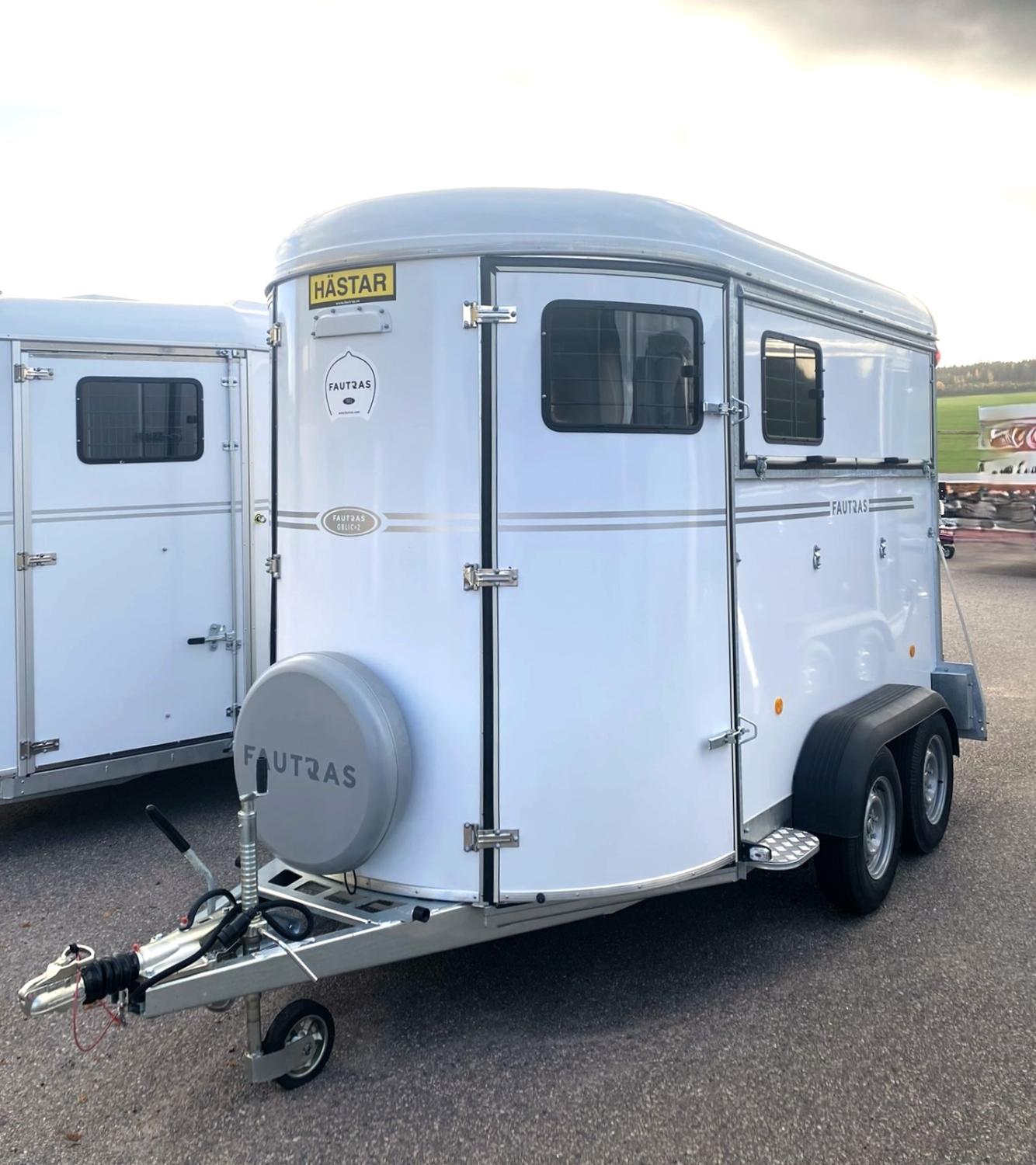 Oblic+2 är hästtransporten där även hästar som vanligtvis inte trivs åker bra. Gott om utrymme för din utrustning samt utan bom framför och bakom hästen. Den är diagonalt lastad och du väljer om hästen ska åka i färdriktningen, baklänges eller som stuterimodell. Otroligt stabil och tyst. Hästar som vill åka brett eller över lag inte trivs i traditionella hästsläp åker många gånger problemfritt i Fautras Oblic +. Översätt till dig själv: Hur väljer du att stå i buss och tåg om du inte har möjlighet att hålla i dig? Du kan ta bort eller flytta sadelkammarväggen om du önskar större utrymme för din utrustning eller köra annat än häst. Mellanvägg i flexibel och hållbar Fautras Tech är ställ- och flyttbar och kan enkelt lyftas ur. Detta hästsläp har även isolerat vitt tak. Byggd helt i glasfiber och stål med livstids garanti på golvskivan. Alla Fautras hästtransporter har halkfri gummimatta och två dörrar bak med step up. Välj till en utdragbar ramp baktill och/eller ramp i fronturlastning. Överluckor på bakdörrarna är ställbara i olika lägen för bästa möjliga ventilation i kombination med det unika luftintaget i fronten. Standard är individuell underhållsfri fjädring, kraftiga sparkskydd, invändiga och utvändiga uppbindningsöglor, innerbelysning, reservhjul, kraftigt stödhjul och låsbar kulhandske. Välj till extra packvägg och sadelhängare baktill för ytterligare plats för utrustning / foder mm.