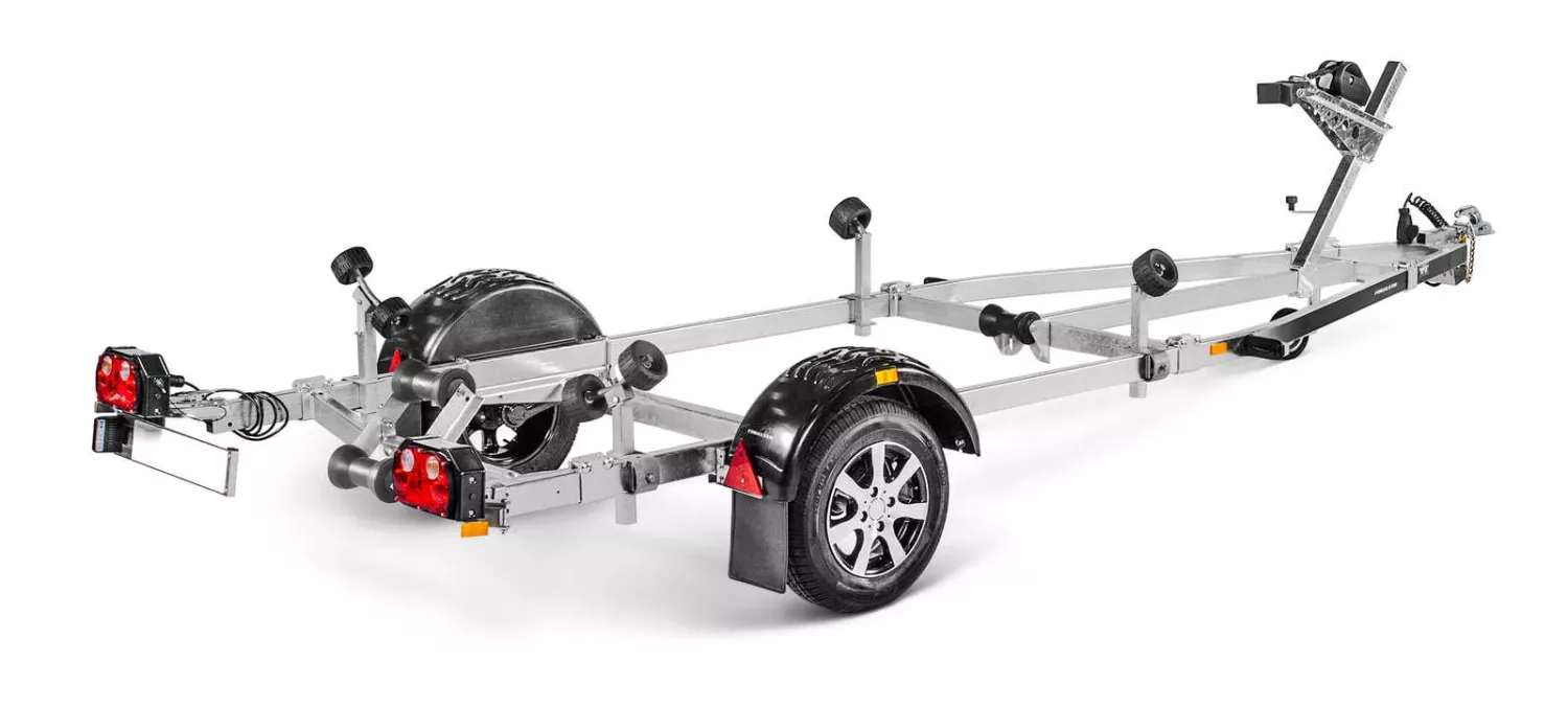 Obromsad trailer för mindre båtar upp till 18 fot. Utrustad med V-formad dragstång och väldigt goda köregenskaper