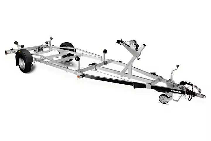 Bromsad trailer för båtar upp till 20 fot Utrustad med förstärkt chassi och väldigt goda köregenskaper. Tippbar förstärkt bakre vagga och justerbara dubbla sidorullar i hög kvalitet för enkel anpassning till din båt. Varmgalvaniserat chassi för lång hållbarhet. Elen är helt skyddad i båttrailerns chassi. Vattentäta hjullager förlänger livstiden. Justerbart vinschtorn. Enkel avtagbar ljusramp med quick-release-fästen för smidig av- och pålastning. Båttrailern på bilden kan vara extrautrustad. Totalvikt (kg) 1300 Maxlast (kg) 980 Tjänstevikt (kg) 320 Utv. mått (cm) 603x191x150 Max båtlängd (m) 6 Max båtlängd (fot) 20 Lastsystem Rullar Kölrullar 4 Sidorullar 6 Justerbar axel Ja Vinsch Manuell Belysning Ja Belysningstyp Ramp Bromsar Ja Antal axlar 1 Hjultyp 185/70Rx13 Antal hjulbultar 5 Fälgtyp Plåt Adapterkabel 13 Adaptertyp Fast rak Utvändiga bindkrokar 0 Heltäckande stänkskärmar Nej Stänkskärmar Ej ståbara Stödhjul Ja