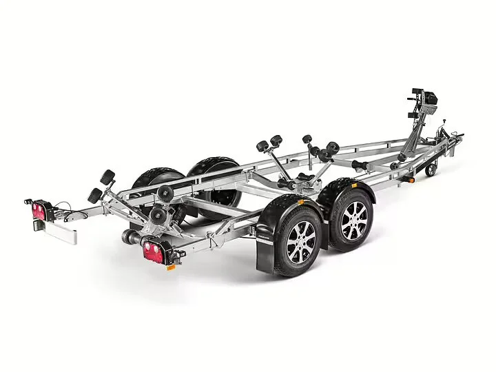Utrustad med dubbla självjusterande vaggor Förstärkta kölrullar Multjusterbara X-line-sidorullar Dubbelaxlad och bromsad trailer för båtar upp till 24 fot. Utrustad med V-format, svetsat och förstärkt chassi och väldigt goda köregenskaper. X-line-kvalitetsrullar med låg inverkan på båtens skrov. Dubbla självjusterande vaggor som automatiskt anpassar sig till båtens skrov, extra förstärkta kölrullar ger optimal support till båten. Varmgalvaniserat chassi för lång hållbarhet. Elen är helt skyddad i båttrailerns chassi. Vattentäta hjullager förlänger livstiden. Helskyddad vinsch och vinschtorn som är enkelt att justera, vinschtornet är även utrustat med en extra säkerhetsvajer för användning vid transport. Smidig, vikbar och vattentät belysning vilket gör både av- och pålastning väldigt enkel. Båttrailern på bilden kan vara extrautrustad. Alufälgar är tillval. Max båtlängd:7,2 m Trailers dimensioner:7,53x2,2 m Axeltyp: 2x Torsion Ram:Varm galvaniserad chassi Justerbar axel:Ja Totalvikt:1990 kg Tjänstevikt: 530 kg Last: 1460 kg Bromsad:Ja Däck:155Rx13C Självjusterande vagga 2 Kölrullar 5 Sidorullar 12 Justerbar axel Ja Vinsch Manuell Bromsar Ja Antal axlar 2 Hjultyp 155Rx13C Antal hjulbultar 5 Fälgtyp Plåt Utvändiga bindkrokar 0 Heltäckande stänkskärmar Ja Stänkskärmar Ståbara Stödhjul Ja