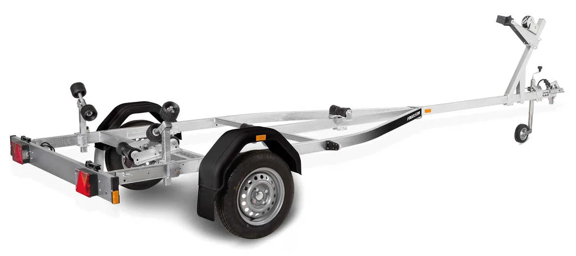 Obromsad trailer för mindre båtar upp till 18 fot, tippbar bakre vagga och justerbara sidorullar i hög kvalitet för enkel anpassning till din båt. Varmgalvaniserat chassi för lång hållbarhet. Elen är helt skyddad i båttrailerns chassi. Vattentäta hjullager förlänger livstiden. Justerbart vinschtorn. Enkel avtagbar ljusramp med quick-release-fästen för smidig av- och pålastning. Båttrailern på bilden kan vara extrautrustad.
