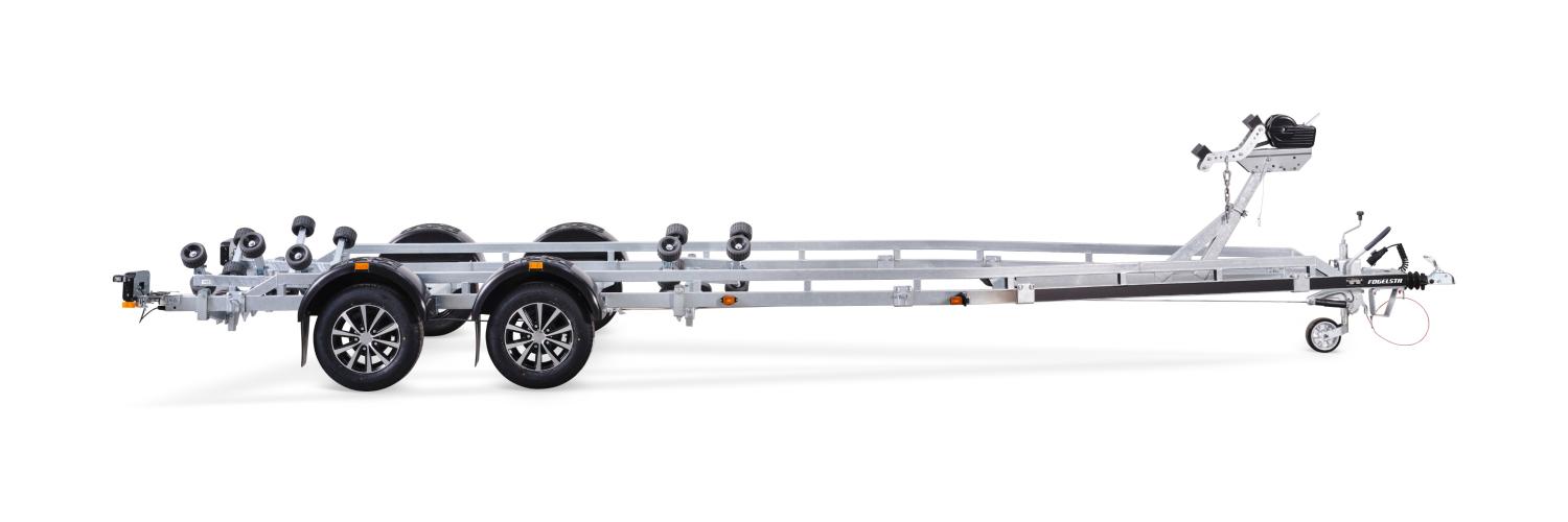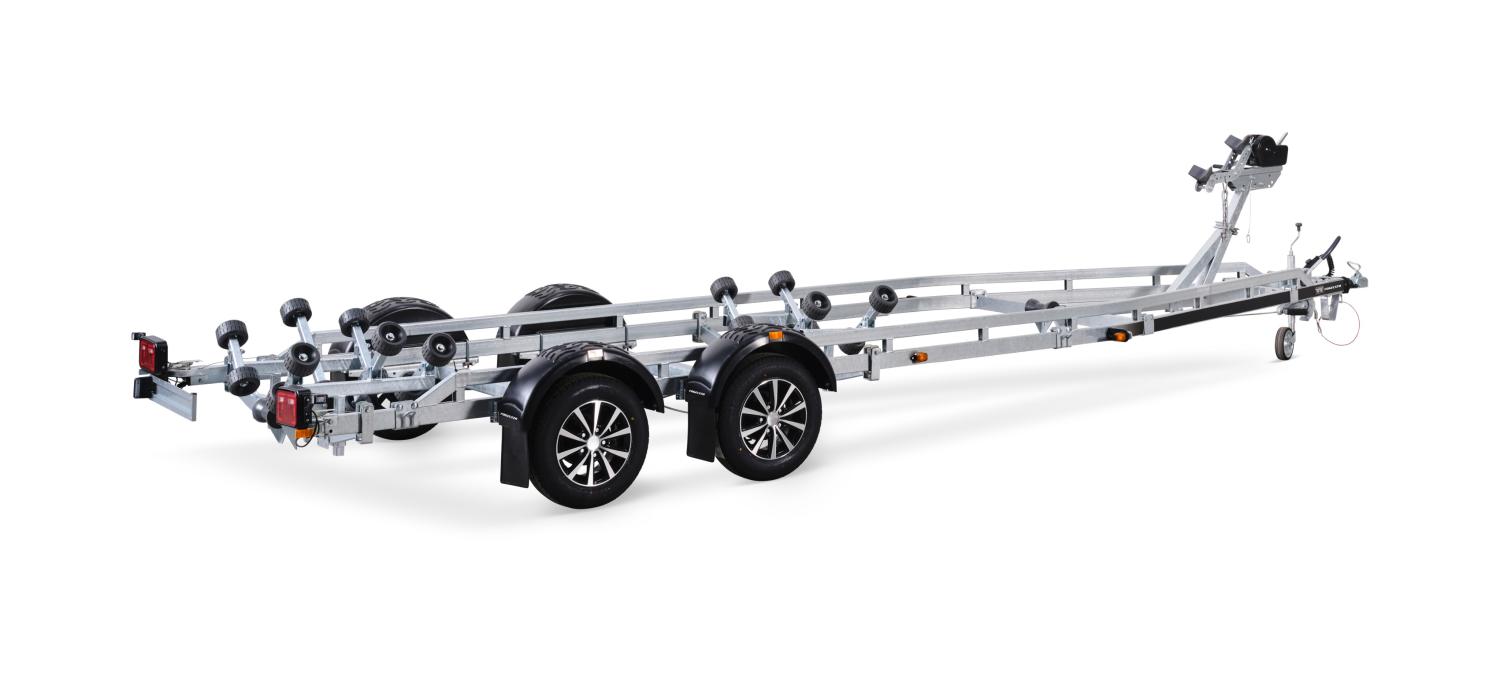 Dubbelaxlad och bromsad trailer för båtar upp till 26 fot. Utrustad med V-format, svetsat och förstärkt chassi och väldigt goda köregenskaper. Adaptiva supersrullar med låg inverkan på båtens skrov. Tippbar adaptiv vagga baktill. Varmgalvaniserat chassi för lång hållbarhet. Elen är helt skyddad i båttrailerns chassi. Vattentäta hjullager förlänger livstiden. Helskyddad vinsch och vinschtorn som är enkelt att justera, vinschtornet är även utrustat med en extra säkerhetsvajer för användning vid transport. Smidig, vikbar och vattentät led-belysning vilket gör både av- och pålastning väldigt enkel. Båttrailern på bilden kan vara extrautrustad.