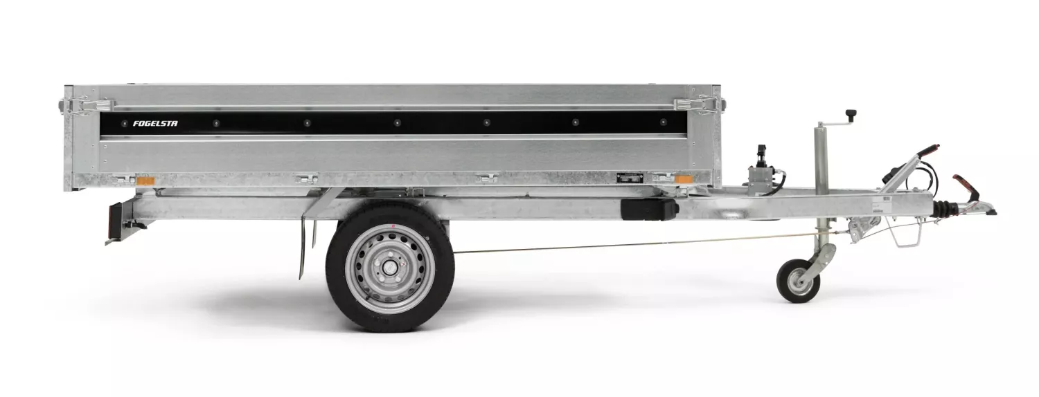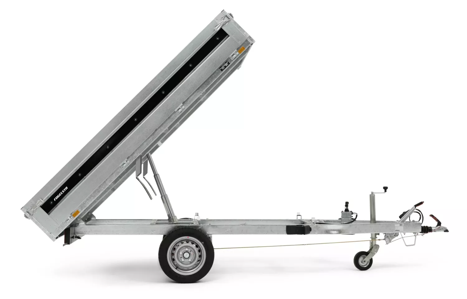 En perfekt arbetskamrat för entreprenören och för transport och lastning av sand, ved eller grus. En robust och enkelaxlad envägstipp. Förstärkt flakskiva i stål med manuell hydraulisk tipp för enkel användning. Hög tippvinkel gör släpvagnen smidig för lastning samt transport av grus, trä eller byggmaterial. Fällbara och avtagbara lämsidor, avtagbara hörnstolpar och presenningsknappar som standard. Sex kraftiga invändiga bindöglor integrerade i flakskivan. Utrusta släpvagnen med nätgrind, förhöjningslämmar, kapell eller något annat tillbehör ur det breda sortimentet som är gemensamt med Serie 4000. Vagnen på bilden kan vara extrautrustad.