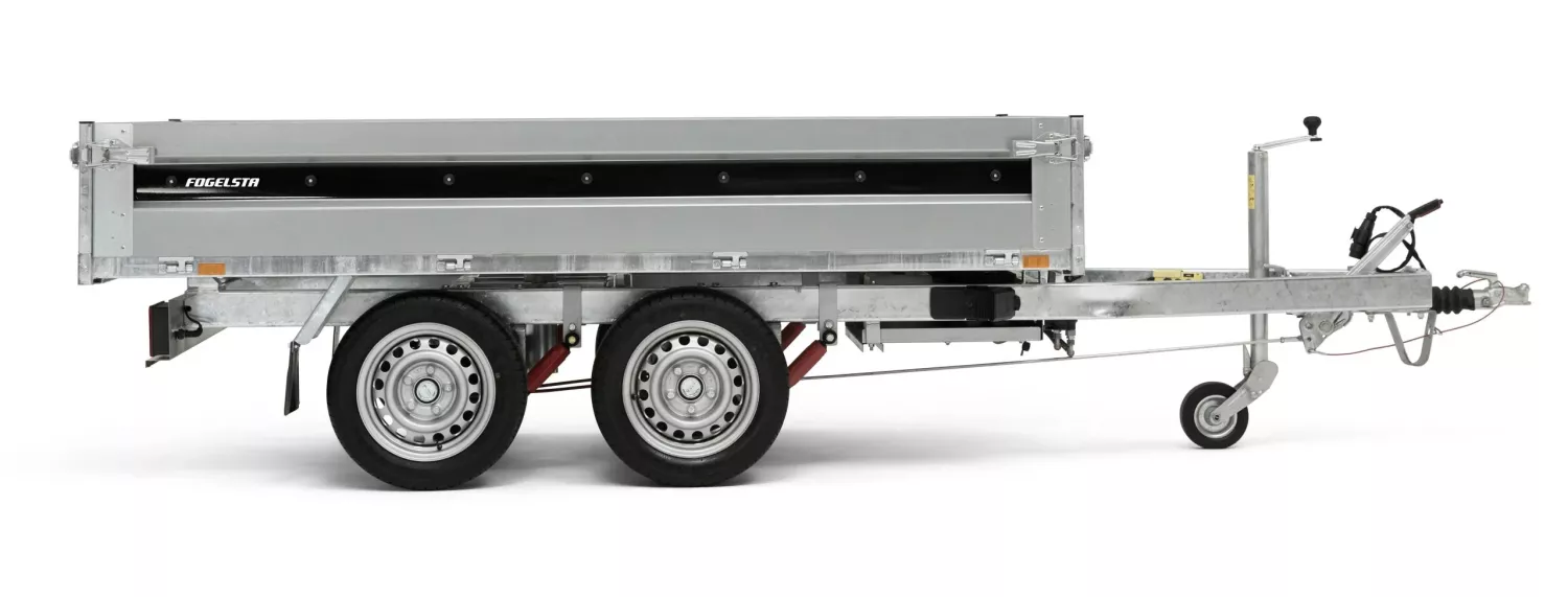 En perfekt arbetskamrat för entreprenören och för transport och lastning av sand, ved eller grus. En robust och dubbelaxlad envägstipp. Förstärkt flakskiva i stål med elektrisk hydraulisk tipp för enkel användning. Hög tippvinkel gör släpvagnen smidig för lastning samt transport av grus, trä eller byggmaterial. Fällbara och avtagbara lämsidor, avtagbara hörnstolpar och presenningsknappar som standard. Sex kraftiga invändiga bindöglor integrerade i flakskivan. Utrusta släpvagnen med nätgrind, förhöjningslämmar, kapell eller något annat tillbehör ur det breda sortimentet som är gemensamt med Serie 4000. Vagnen på bilden kan vara extrautrustad.
