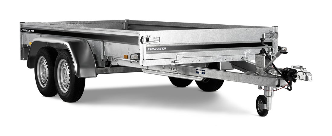 Professionell släpvagn för anläggnings- eller byggarbete, med låg tyngdpunkt för högre säkerhet och stabila köregenskaper. D-serien är ett pålitligt val vid transport av småmaskiner och smidig vid lastning och lossning. Fällbar fram- och bakläm Utvändiga bindkrokar Ståbara skärmar