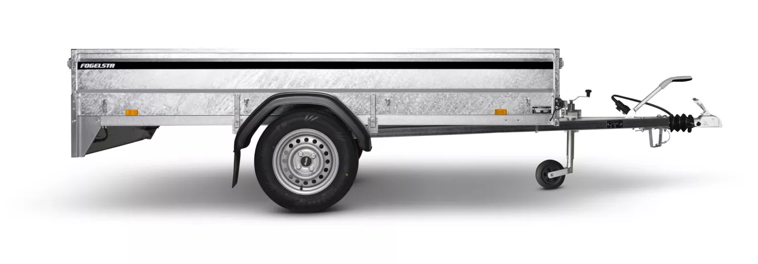 Kraftigare chassi och helgjuten kopplingExtra höga sidopanelerFlakytan anpassad för byggskiva Svetsad, robust och flexibel vagn för byggmaterial och trädgårdsarbete. Jämfört med L-serien är flakytan och kapaciteten större. Förberedd för proffstipp. Vagnen på bilden kan vara extrautrustad.