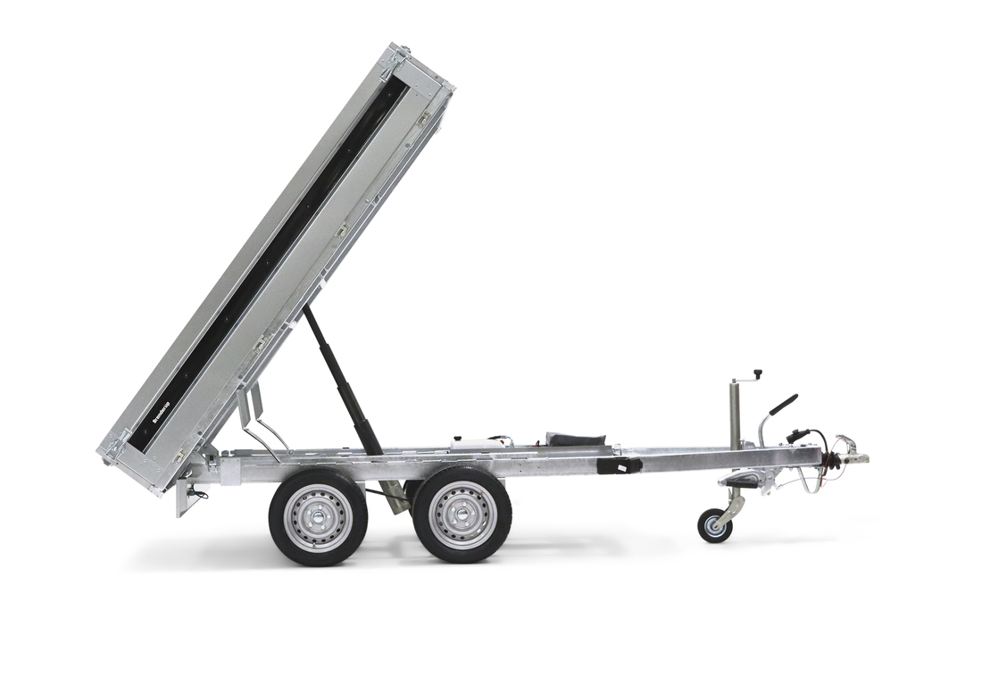Transportera och lasta byggmaterial, hö, grus, ved, sand eller maskiner med det dubbelaxlade BT4000-släpet. Med sin robusta konstruktion och sina smarta funktioner är det både lättanvänt och effektivt i alla situationer - och klarar tuffa uppdrag. BT4000 är utrustad med en kraftig baktipp med två axlar och en förstärkt flakskiva i stål för extra hållbarhet. Den el-hydrauliska tippfunktionen gör lossning smidig, medan den förbättrade tippvinkeln – utökad från 45 till 55 grader – ger ökad lossningskapacitet. För säker och stabil lastförankring har släpet sex invändiga bindöglor med gummihölje, var och en med en godkänd belastning på 500 kg. Den multifunktionella baktippen är enkel att använda och anpassa efter behov, på tandem-modellerna är integrerad rampförvaring standard vilket gör det enkelt att extrautrusta med ramper för smidig transport av maskiner och fordon. För ökad hållbarhet och säkerhet har ljusrampen en uppgraderad design som skyddar all utvändig el, samtidigt som dess sneda vinkel minimerar smutsansamling. Standardutrustningen inkluderar även fällbara och avtagbara lämsidor samt avtagbara hörnstolpar, vilket ger maximal flexibilitet vid lastning. Anpassa släpet efter dina behov med nätgrind, förhöjningslämmar, kapell eller andra tillbehör från vårt breda sortiment