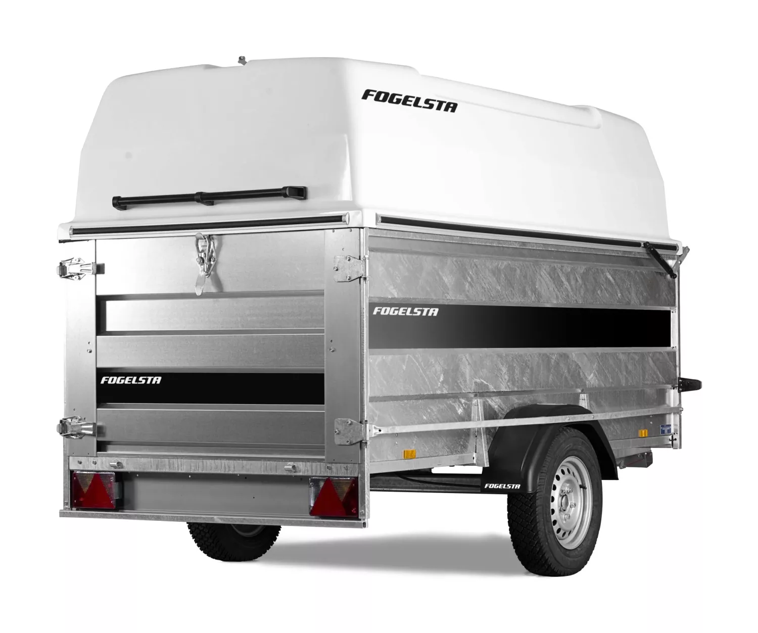 OBS! Beställningvara. Välkonstruerad och slitstark vagn med låsförberedd glasfiberhuv och mycket bra lastningskapacitet. Mycket goda köregenskaper tack vare den behändiga storleken. Utrustade med 80 cm höga lämmar, stödhjul och sidohängd bakdörr. Den 65 cm höga glasfiberhuven går att få profilerad mot en extra kostnad.