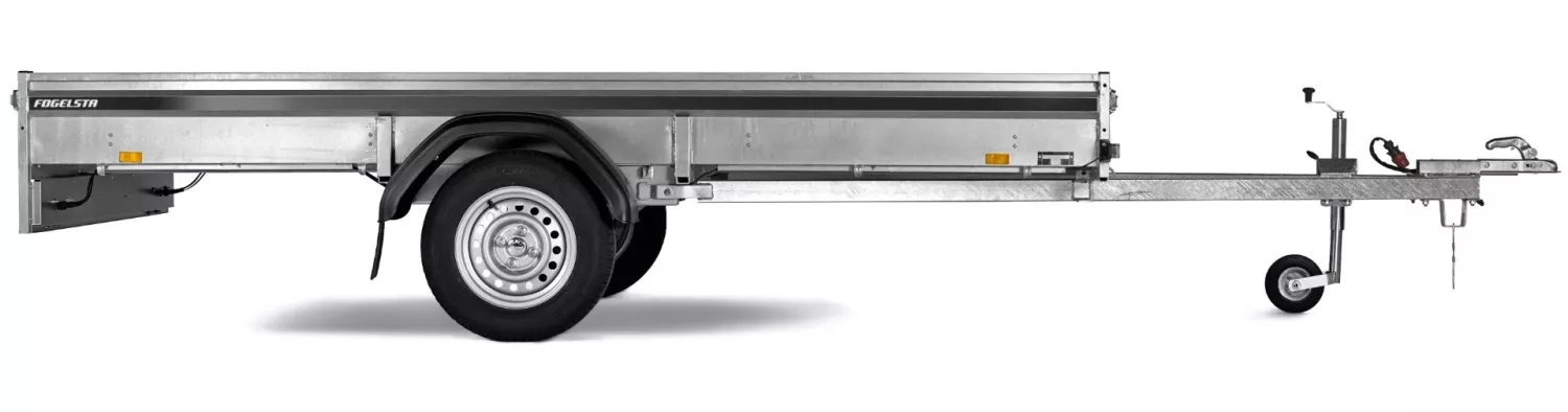 Obromsad snöskotervagn som är en utmärkt allroundvagn, med låg tyngdpunkt för högre säkerhet och stabila köregenskaper. Komplettera med en snöskoterramp som gör på- och avlastning av snöskotern enkel. Välj till skruv- eller gasfjädertipp samt stödhjul som extra tillbehör. Vagnen på bilden kan vara extrautrustad.