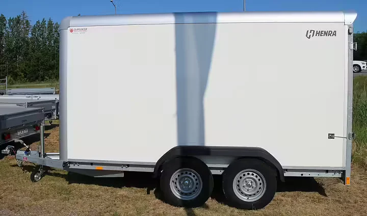 Finns i olika höjder. 160cm, 190cm eller 220cm. Väggar och tak i glasfiber. Extremt robust och tåligt chassi. Surrningsöglor längs alla väggar. Vagn utöver det vanliga. Finns mängder med tillval. Ramp bak. sidodörrar, luckor, 2 eller 3 axlar, bladfjädring mm Vi ser helst en telefonkontakt för att kunna hjälpa till på bästa sätt att välja ut de tillval och modell som passar bäst. Även körkortsregler är något vi är experter på. Invändigt mått 365x138 dörrar bak Totalvikt 2700kg Lastvikt 2000kg Däck 185 14C