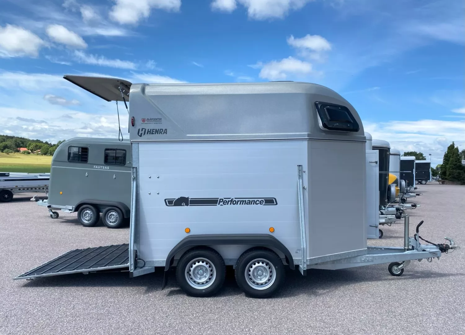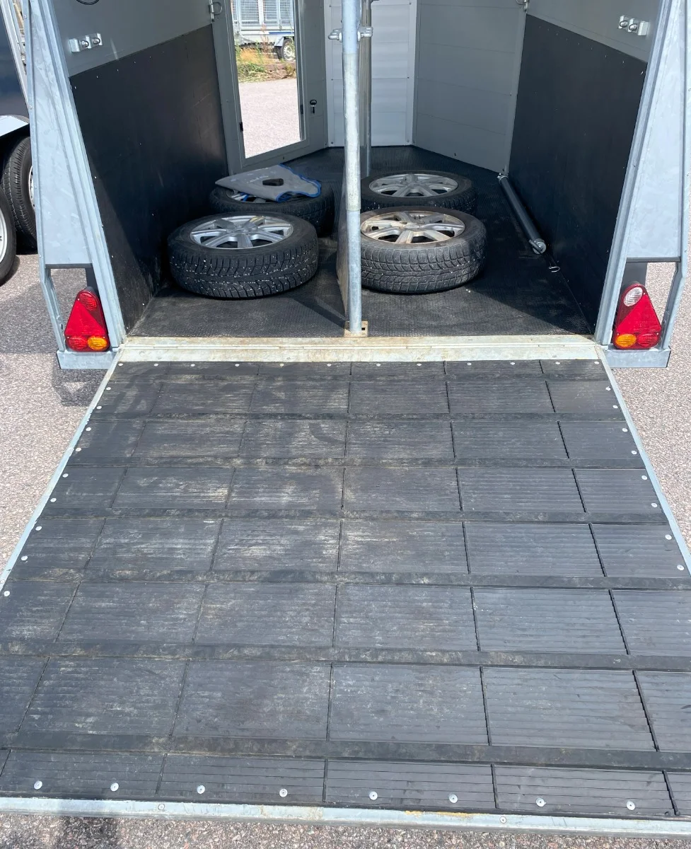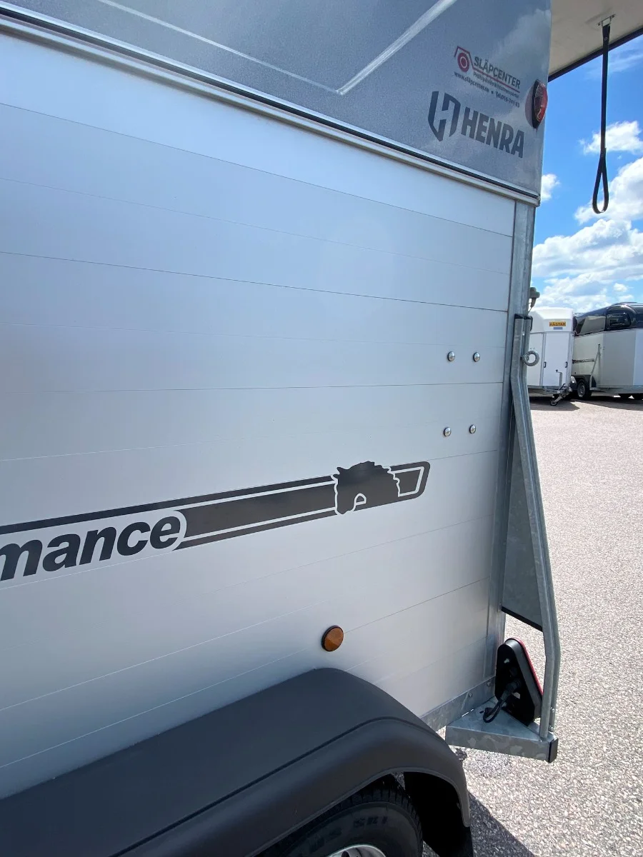 Väldigt fin Henra för två hästar, årsmodell 2023. Två öppingsbara fönster, 3/4-delsbom för hästar som vill åka brett, sparkskydd, hård överlucka och dubbade vinterhjul mm. Henra är välkänt för sin fina väghållning och hållbarhet. Nyservad på vår verkstad. Totalvikten 1200kg kan vi ändra 1100-2000kg för att passa din bil och körkort. Pris 92000kr. Ingen moms. Finansiering erbjuds, från 853kr/månad.