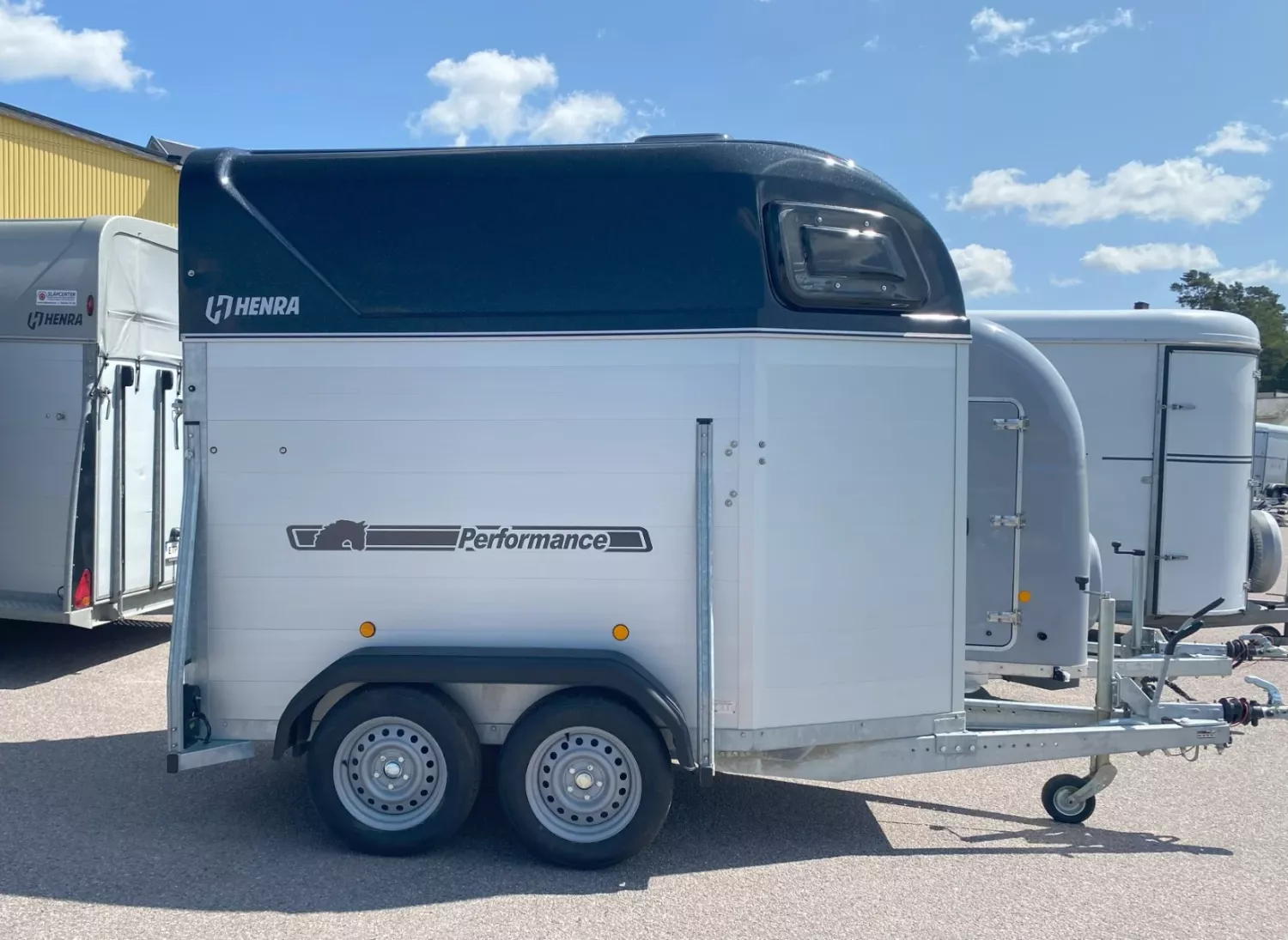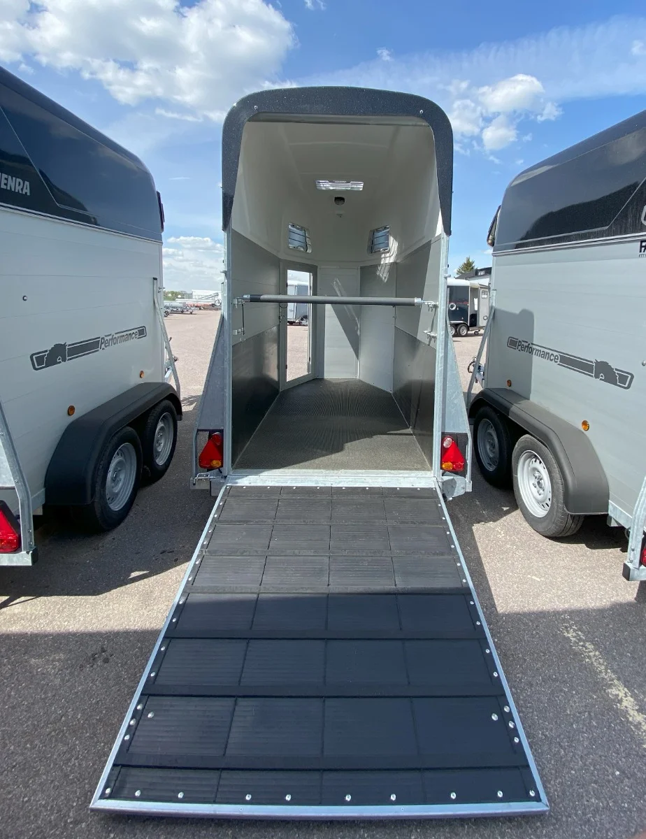 130 cm bred och trevlig hästtransport för en häst. Henra väljer man för dess robusta konstruktion och tjocka materialval. 15 års garanti på polytylen/alu-golvet. Fällbara frambommar, justerbar höjd 20cm. Sparkskydd. Extra sidobalk baktill för hållbarhet och stabilitet samt förstärkningar mellan vägg / tak. Kraftigt automatiskt stödhjul. Öppningsbara fönster med galler.