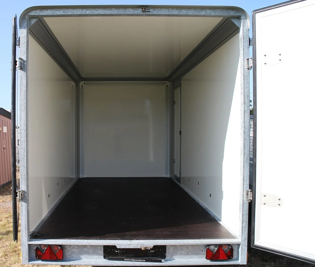 Vid bokning mail info@slapcenter.se och kontrollera att önskat datum är tillgängligt. Större släp med skåp för t ex flytt. Invändigt mått 365x158x190cm