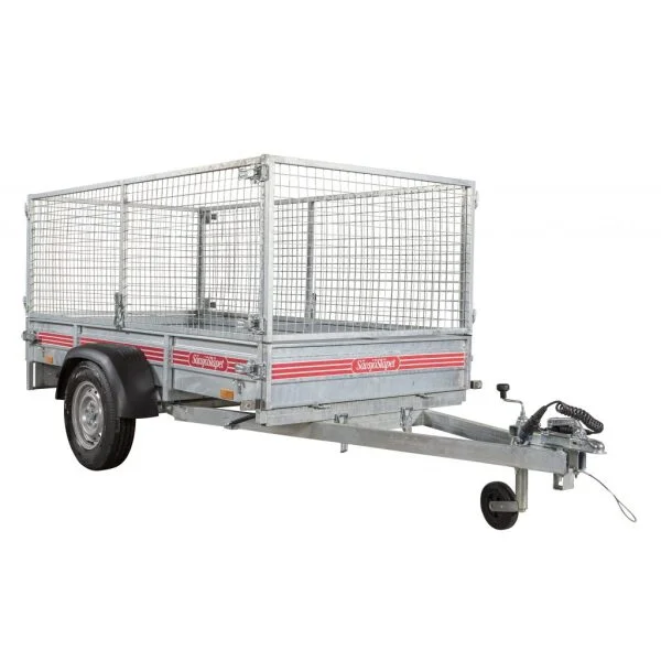 Totalvikter: 500, 550, 600, 650, 700, 750kg. Lastförmåga: 255, 305, 355, 405,455,505 kg. Levereras med odämpad tipp, spiralkabel, stödhjul, invändiga surrningsöglor CE-märkta, utvändiga bindkrokar, 5-bultsfälgar samt plastskärmar