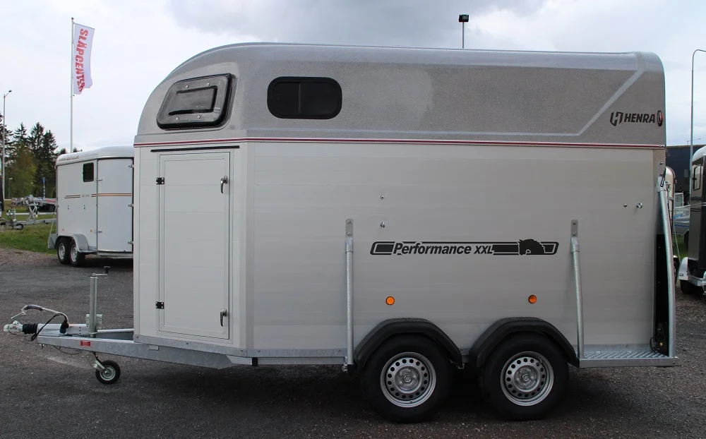 2-hästars modell XXL Standardfärg tak: Silver Invändiga mått: 402x170x235 cm Vikt vagnen: 1040 kg Max totalvikt: 2700 kg TILLVAL - HENRA HÄSTTRAILER Transparent taklucka Justerbar bakbom i höjd 20cm Sadelkammare fast på dörren Ramp / dörr kombisystem + mycket mer: Kontakta oss för offert!