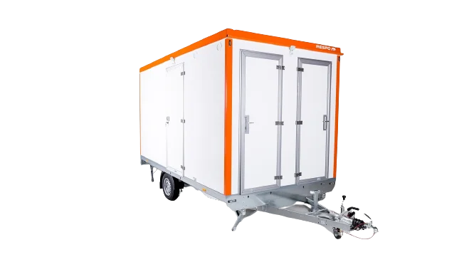 En perfekt lösning för upp till 4 personer och som använder vagnen året runt. Ett stort rum för att äta, byta om och göra pappersarbete. Toaletten har en 300L behållare och handtvättsystem. Standardmodellen kan beställas med eller utan verktygsrum.