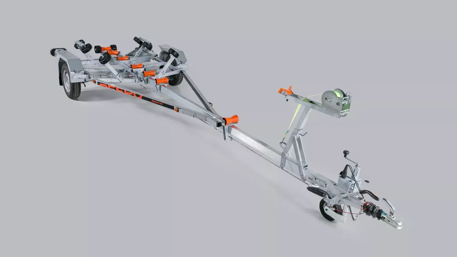 För större Pioner båtar som Pioner 17 Flexi och Pioner 17 Touring är denna trailer det självklara valet. 7 stycken polyuretan kölrullar och en vagga bak gör det enkelt att sjösätta båten. Sidostöden ger en utmärkt stabilitet under transport och den starka vinschen hjälper till att dra på båten på ett bekvämt och säkert sätt.