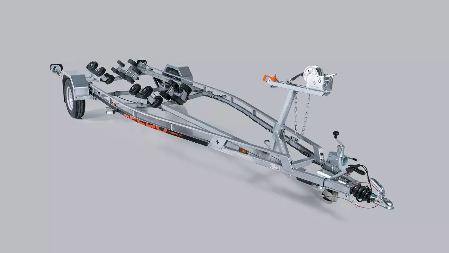 Årets Nyhet är vår multiserie, som består av vagnar som saknar traditionella kölrullar. Denna trailer kompletterar utbudet i mellanrangen för bromsade vagnar. Multirulle systemet avlastar kölen helt, ett bra alternativ för flackare båtar eller båtar med ojämn skrov.