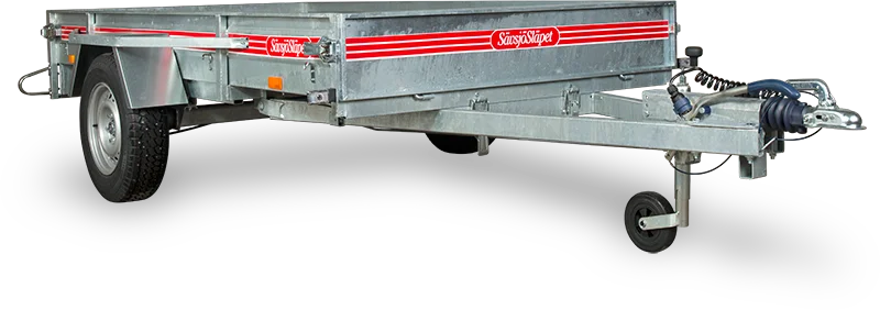Hållbar och svensktillverkad vagn av högsta kvalité. Standardutrustad med spiralkabel och tippfunktion. Invändiga surrningsöglor och fällbara lämmar fram och bak.