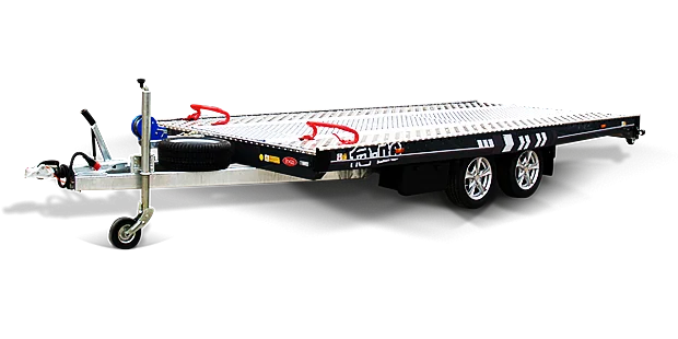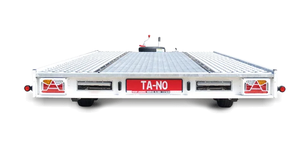 Car transporter TA-NO T4B-14H with perforated aluminum platform for car transport.
