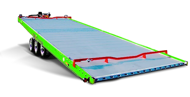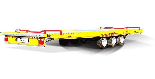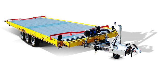 Denna mångsidiga trailer för transport av fordon kommer att glädja de mest krävande kunderna. Allt är genomtänkt, harmoniskt och ergonomiskt. Den automatiskt fällbara belysningsrampen när plattformen tippas är en unik lösning i denna typ av släp. Lastvinkel under 10°