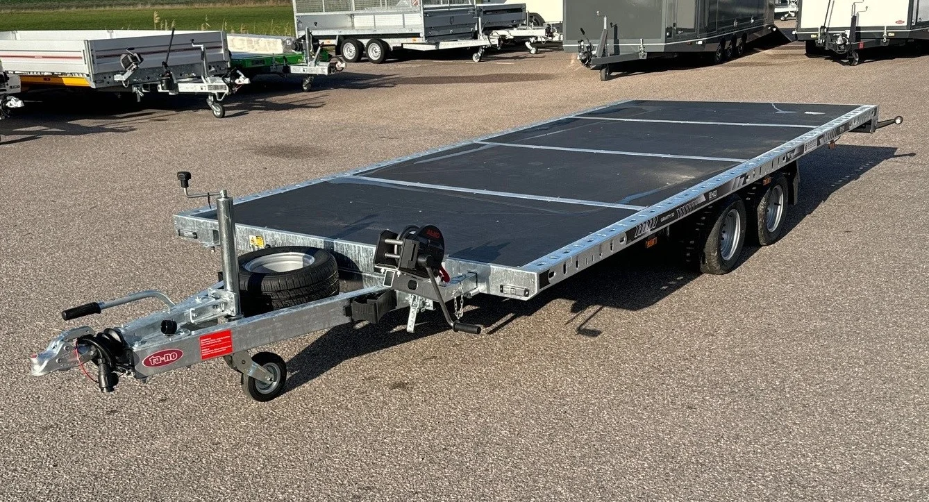 Bästa tänkbara kvalité och ett absolut toppsläp med tippbart flak och ramper. Det mesta är standard på denna modell som Ledbelysning, reservhjul och vinsch.