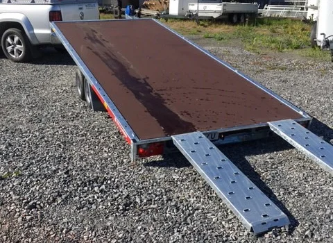 Tippbart lastplan för enkel lastning Stor plattform med surrningsöglor runt om Fällbara sidor finns som tillval
