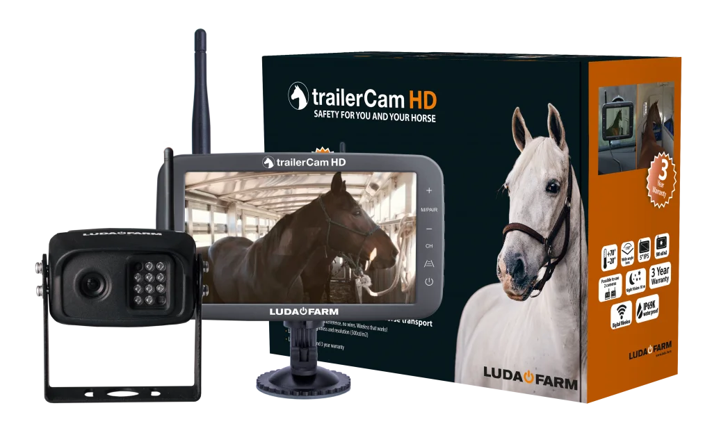 Övervaka din häst i transporten när du kör! TrailerCam HD är ett kamerasystem som gör att du enkelt kan övervaka din häst i transporten under bilfärden där du hela tiden kan se vad som händer. Det går snabbt att sätta upp monitorn och komma igång med din kamera. På ett par minuter har du ett säkert, trådlöst system som ger dig högupplösta bilder inifrån släpet. TrailerCam HD har nattseende och ger dig skarp och tydlig bild även om du skulle köra när det är mörkt ute, vilket gör att kameran fungerar bra även vid längre bilturer. Vidvinkelfunktionen gör att du enkelt kan se hela släpet och vill du kan du köpa en extra kamera för att få möjlighet att se bakom trailern när du backar. TrailerCam HD har en robust konstruktion, den är vattentålig och kommer med 3 års garanti om du registrerar dig på https://www.luda.farm/warranty-register/SV.htm
