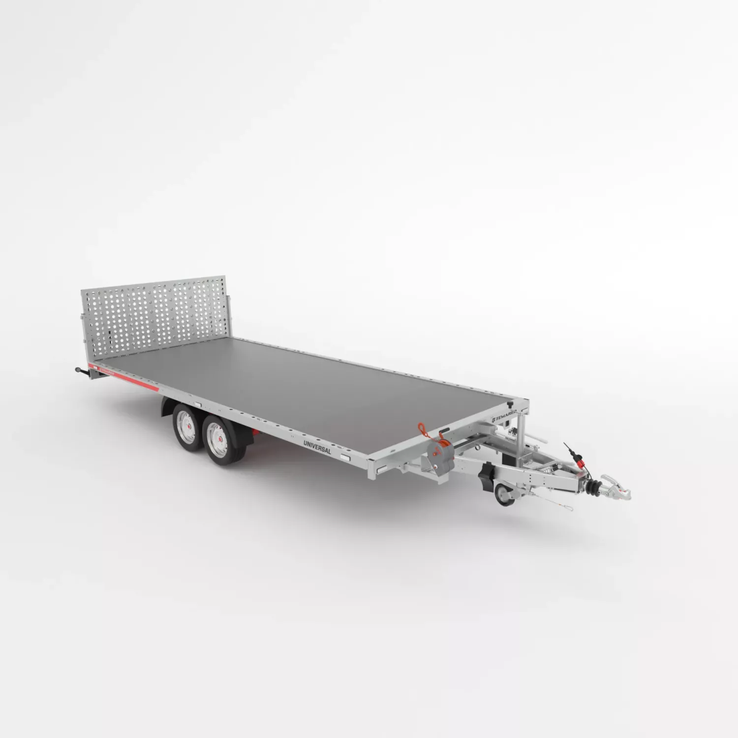 A series of universal car platform with a tilting structure, a low angle of overrun and a wide range of additional accessories. Loading space tilted by a convenient hydraulic system. These trailers can be equipped with 300 mm aluminum sides. Depending on the selection- wheel version R10C or R13C. Welded, hot-dip galvanized frame. Loading space made of non-slip waterproof plywood. Load capacity up to 2750 kg. The maximum possible GVW is 3.5 t.